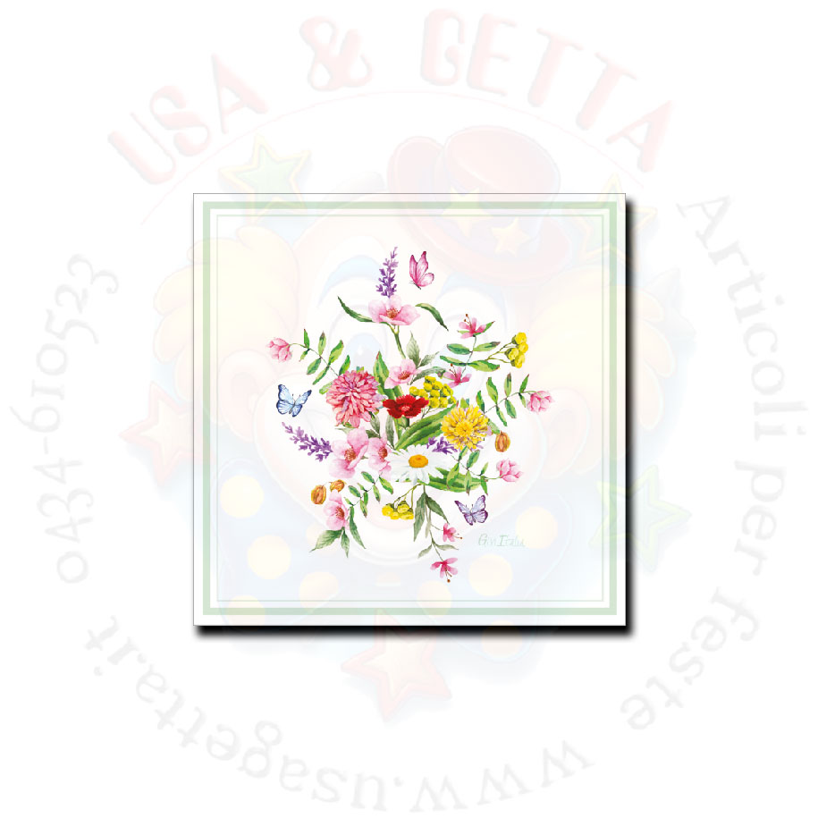 Tovaglioli fiori /farfalle c/puntini 3veli 33x33 16pz